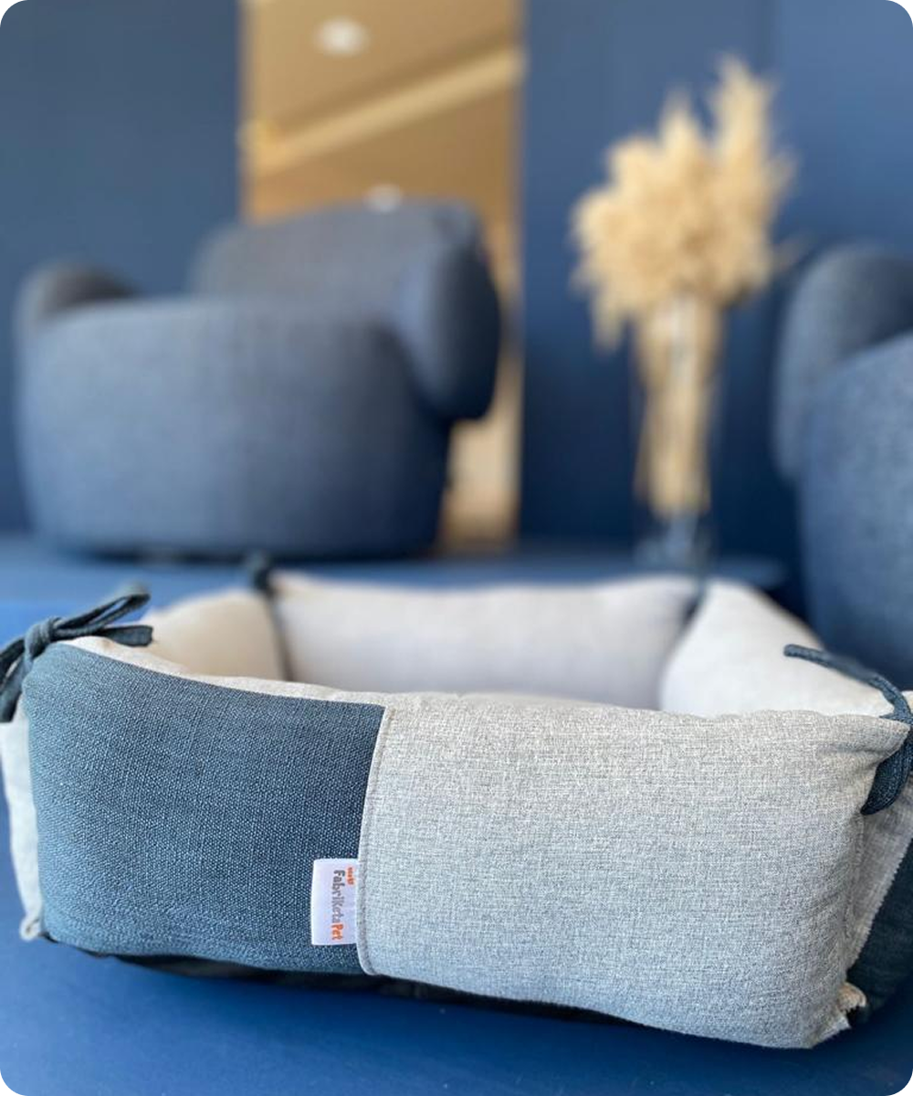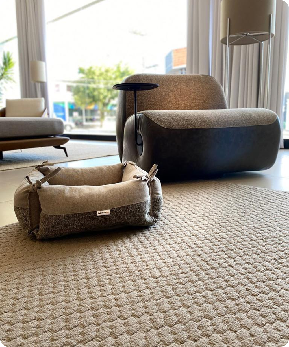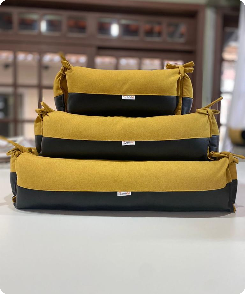 Caminhas, futons e brinquedos feitos com resíduos têxteis, promovendo economia circular e um consumo mais consciente — bom para o seu pet e para o planeta.